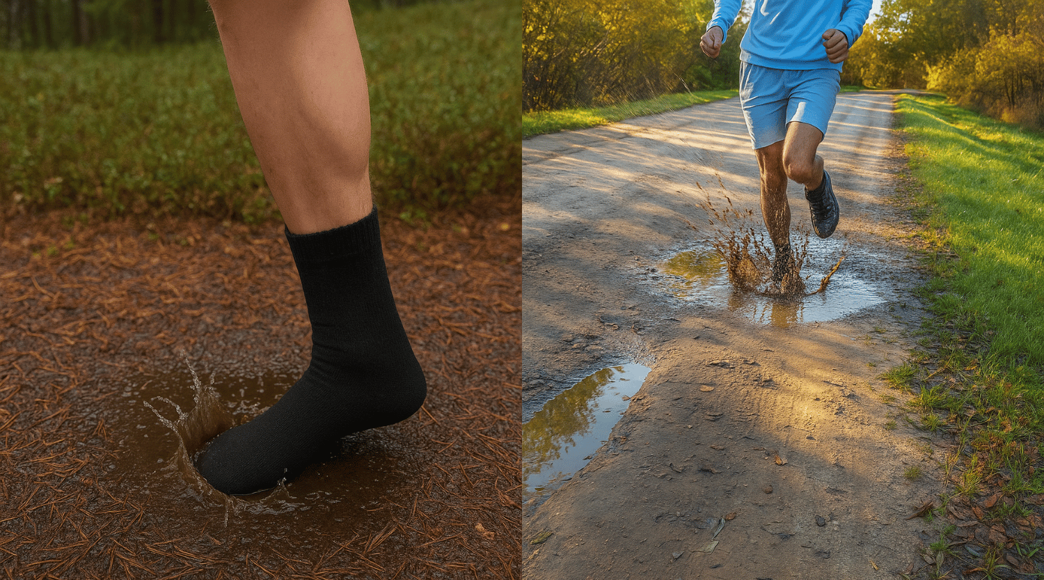Designed for runners, hikers, and cyclists, our waterproof socks are engineered to protect your feet, maximize comfort, and help you perform at your best — whether you’re conquering rainy trails, muddy paths, or wet city streets. Every stitch, every material, and every feature reflects our commitment to durability, innovation, and motivation.